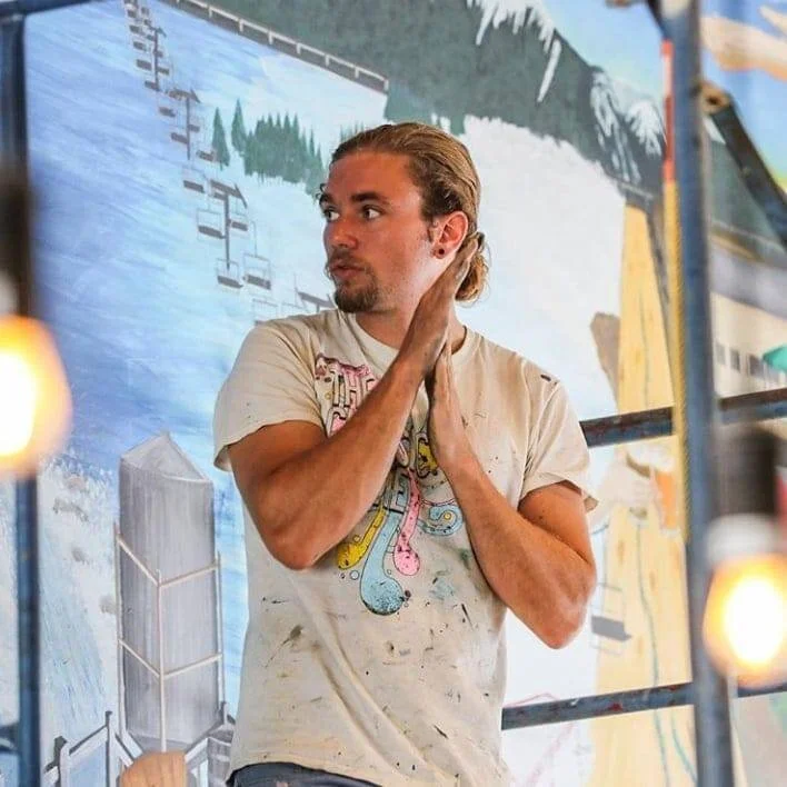 “Just send it” is the perfect title for this mural. Not only a local saying, but a cultural attitude towards every day lived in the mountains. When sketching for this project, I didn’t want to leave out any hobby or passion that makes Summit County the beautiful playground that it is. At 20 feet long and 8 feet tall, I had a lot of room to squeeze in the detail. I had no choice but to take on the “just send it” attitude towards the largest project I had ever undertaken.